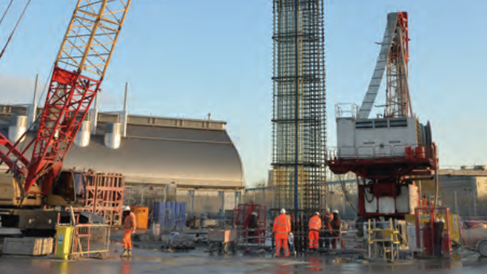 Fibre optic monitoring1FO cables were installed in three of the twenty 1.2m thick and 84m deep diaphragm wall panels that made up the primary lining of the shaft (Figure 1). The panel reinforcement cage was instrumented with three FO cables to measure bending strain along the entire depth of the wall as well as hoop strain at predefined locations. This marked the first use of fibre optics to measure bending and hoop response in a deep underground diaphragm wall. Installation involved two stages: (1) a pre-installation on the first reinforcement cages for each panel when the cages were still lying on the ground; and (2) the main installation when the remaining cages were lifted into position, welded to the cages underneath before being lowered into the bentonite-filled trench. Baseline readings were taken before and during shaft excavation until the final excavation depth was reached. The installation was part of a live project so CSIC had to ensure only minimal disruption to the construction process. The results were compared to predictions obtained from a finite-element model of the shaft using the Plaxis software package.