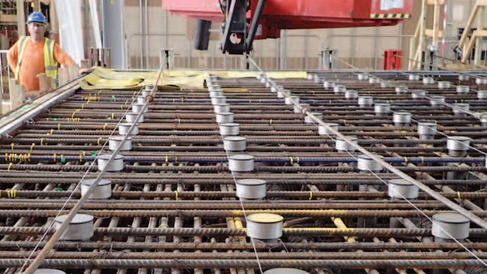 Figure 3: Fibre optic sensor cables attached to the basement raft reinforcement